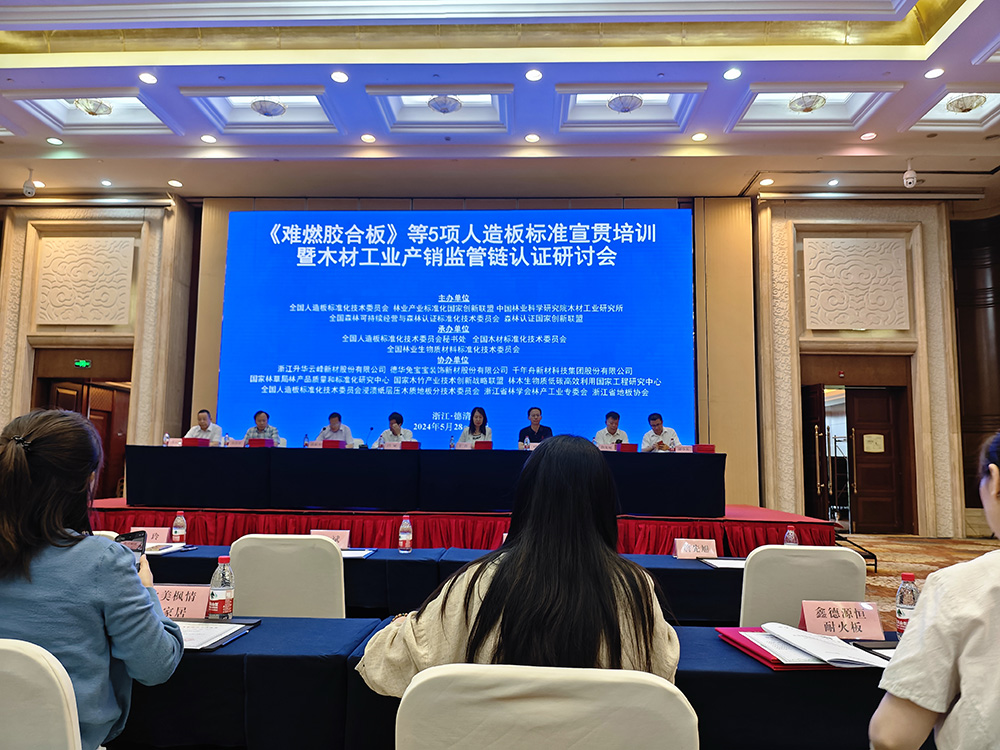 2024年5月28日-30日《难燃胶合板》等5项人造板标准宣贯培训暨木材工业产销监管链认证研讨会在浙江德清顺利召开。
